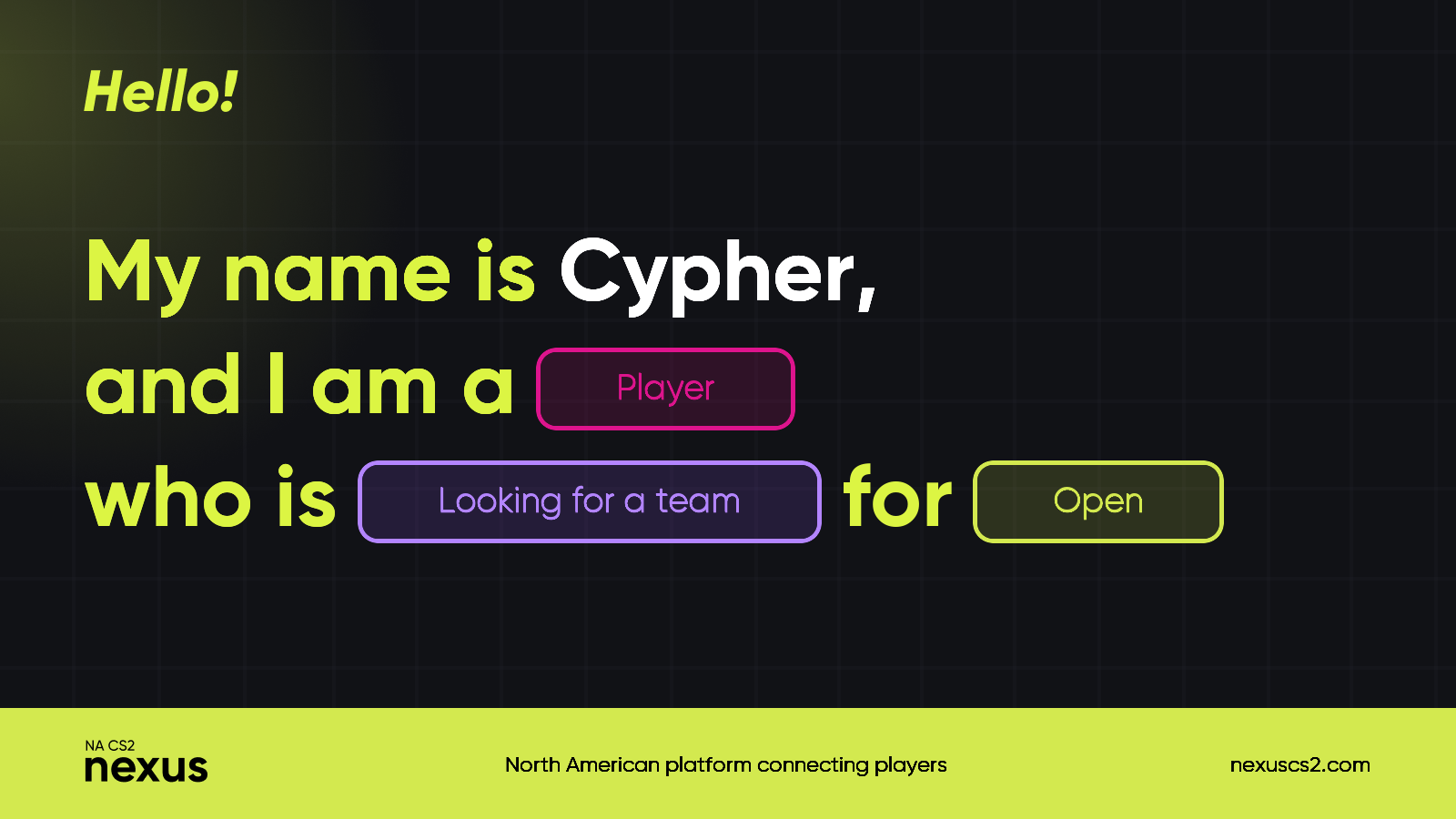 screwy schedule - really only available weekends, so stand in works best :) FaceIt ELO - 2050 - Peak 2450 ESEA - A-