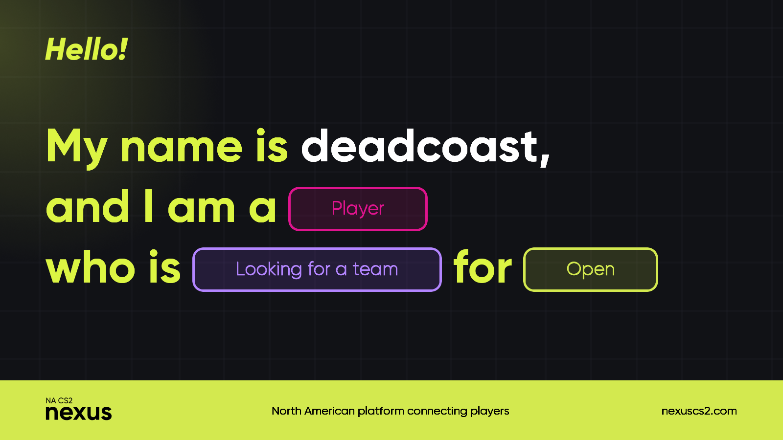 4fun, но если вдруг найдётся соулмейт, то я короче типо... умный + даю правильные коллы + позитив вайбс (не путать с терпильным, я не зиберт1715) + ЭМО в душе + пофигист^^ В МЕРУ. УМЕЮ ПРЫГАТЬ НА ХОЛОДИЛЬНИК НА МИРАЖЕ