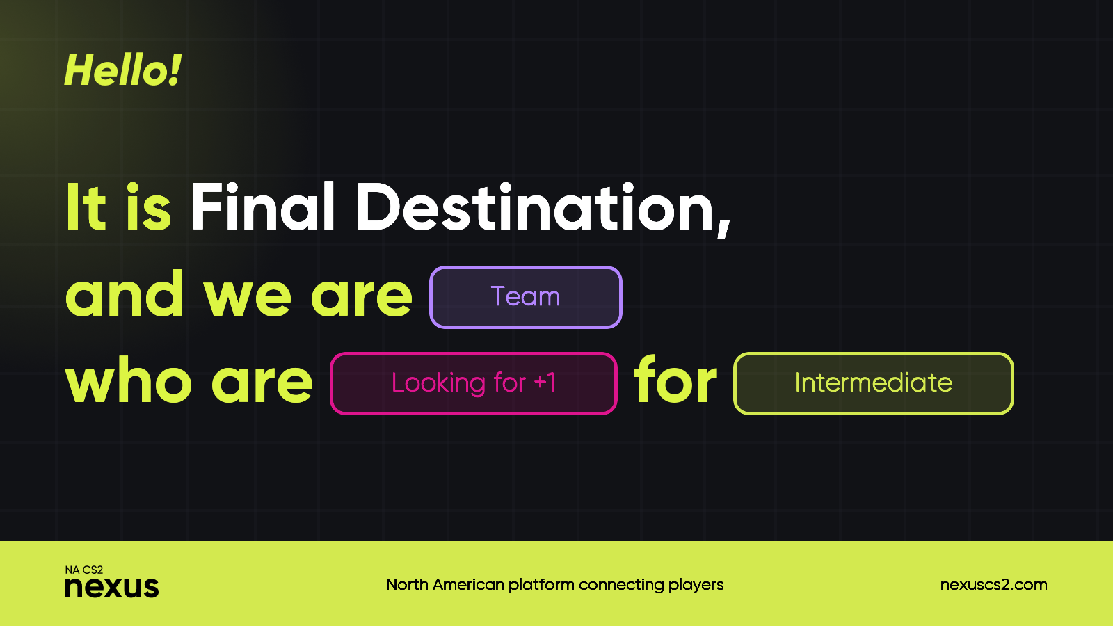 Chill east coast gamers. Looking for one, ideally someone who can call. Not wanting to sweat too much but we want to take a little time to prepare for matches. The core 4 (naz, moop,chesky, fishbellyboi) have played together since 2018 - all retired from 2020 to 2024, came back this past spring. Looking for someone who wants to have fun while being serious about the game. More important that you're cool and fun than good at the game. Add naz on discord with: naz00752 or on steam: https://steamcommunity.com/id/ratslayer/