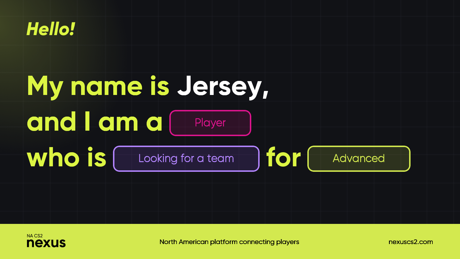 Have 7 seasons of Adv xp (S38-S44), Frag 16 and 17, but took a break. Comfortable playing all rifles roles, can IGL if needed but I am more useful when helping with mid round calls.