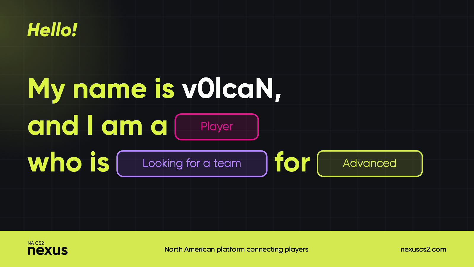 Vocal and serious player Available for LAN anywhere Many LAN playoffs exp and ADV seasons with 80+ adr Open schedule after 6pm est